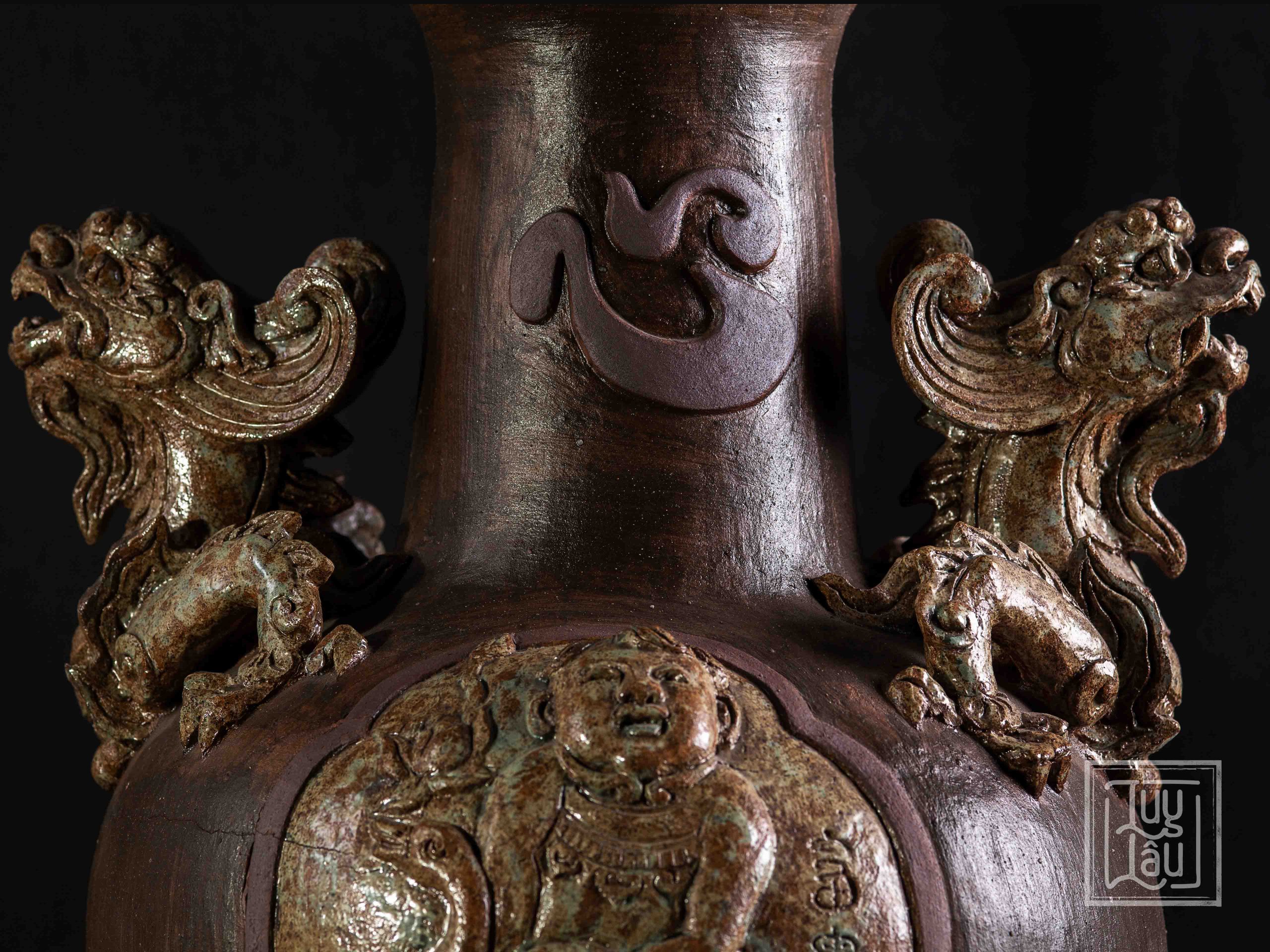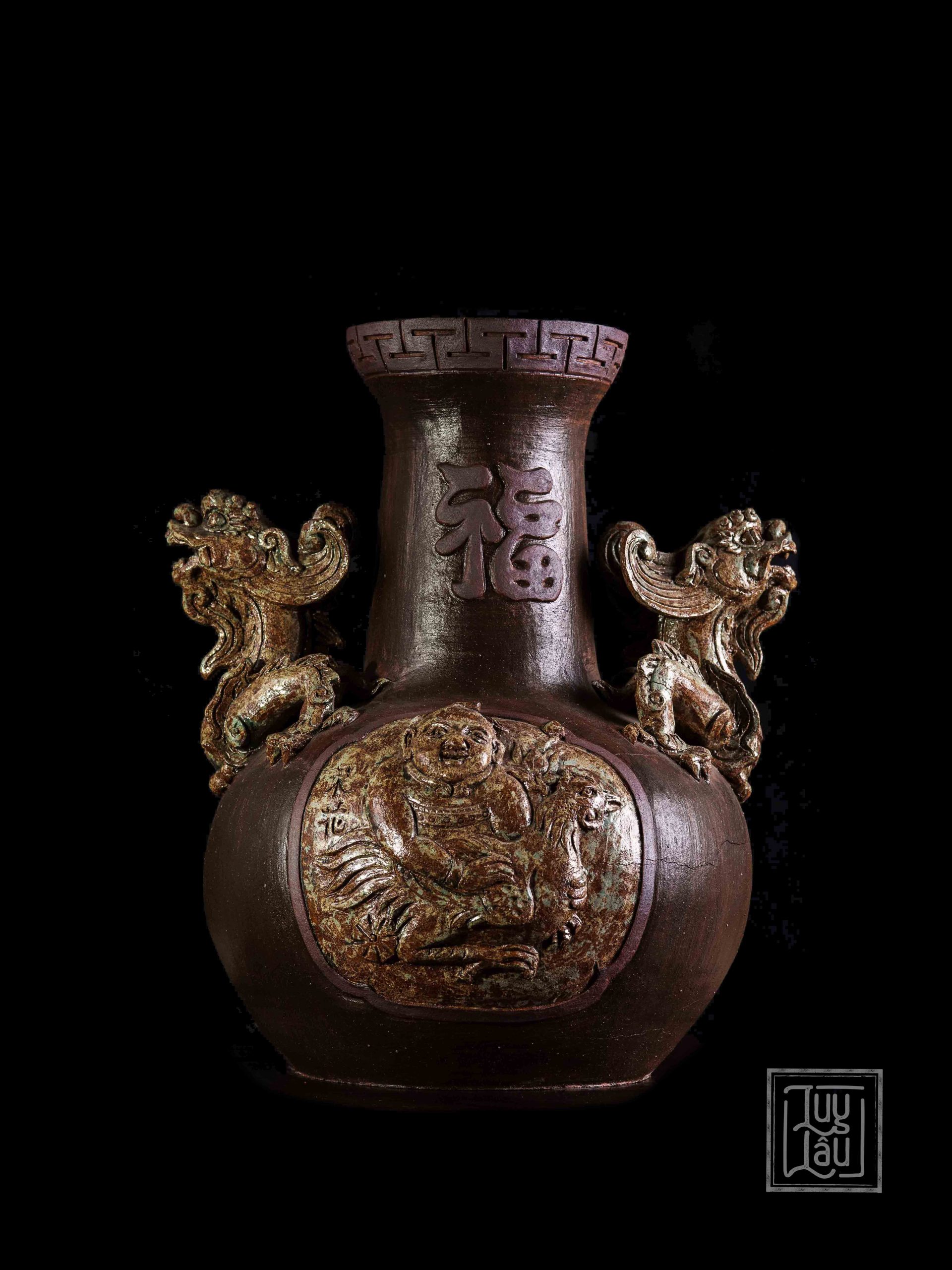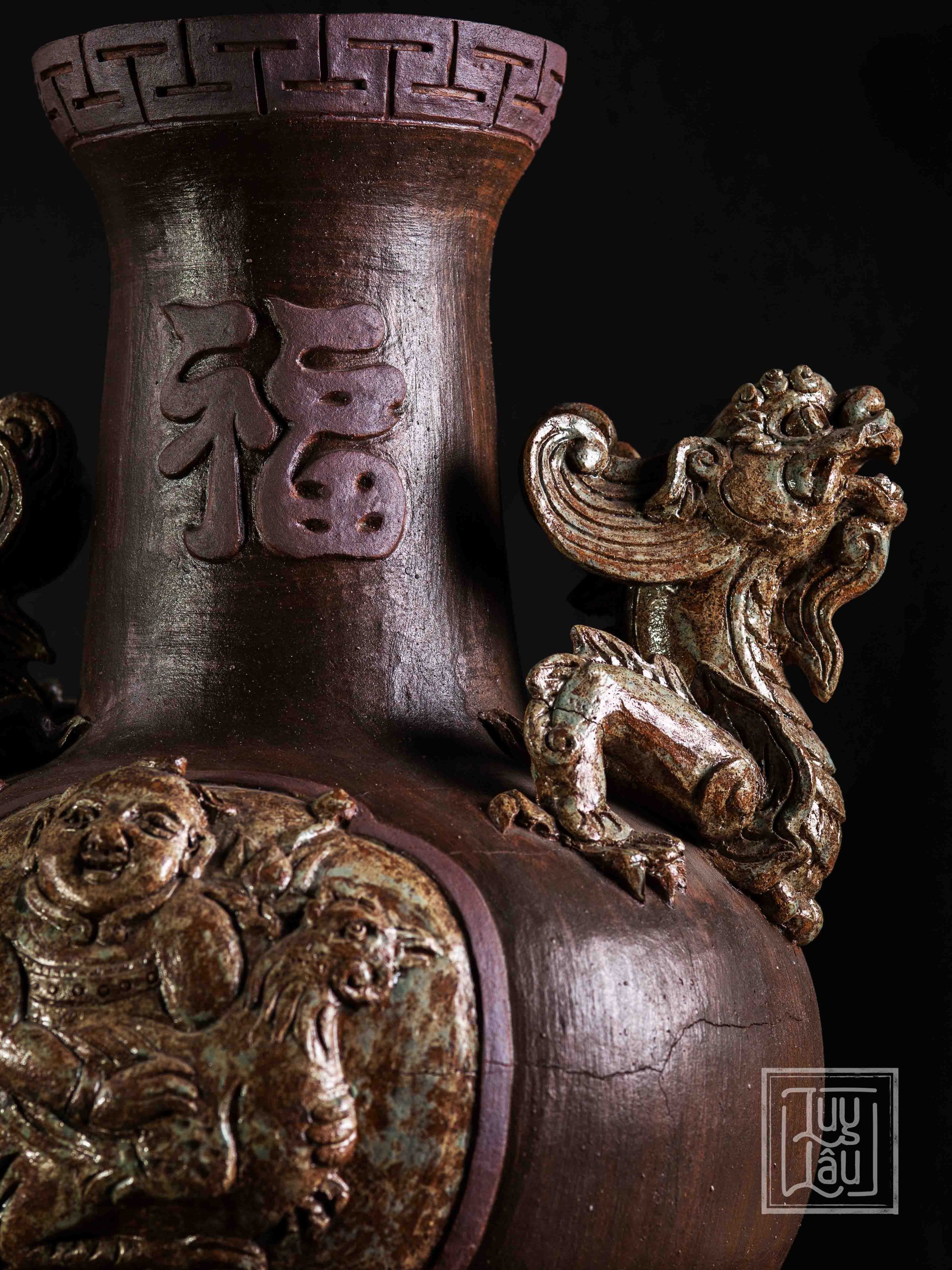 Bình được làm từ gốm cổ đặc trưng vùng Luy Lâu, được nung ở nhiệt độ từ 900-1050 độ C. Sản phẩm có thể trưng bày ở phòng khách, đem tài lộc, vinh hoa cho gia chủ.