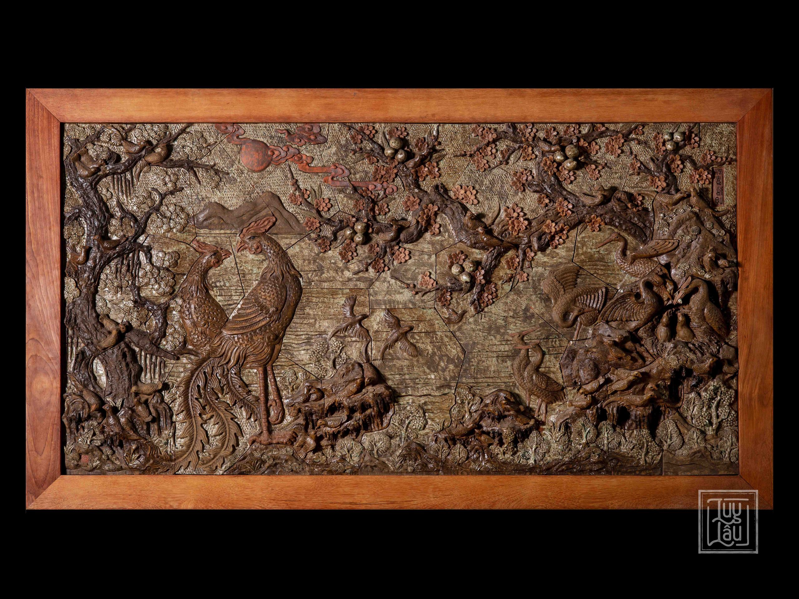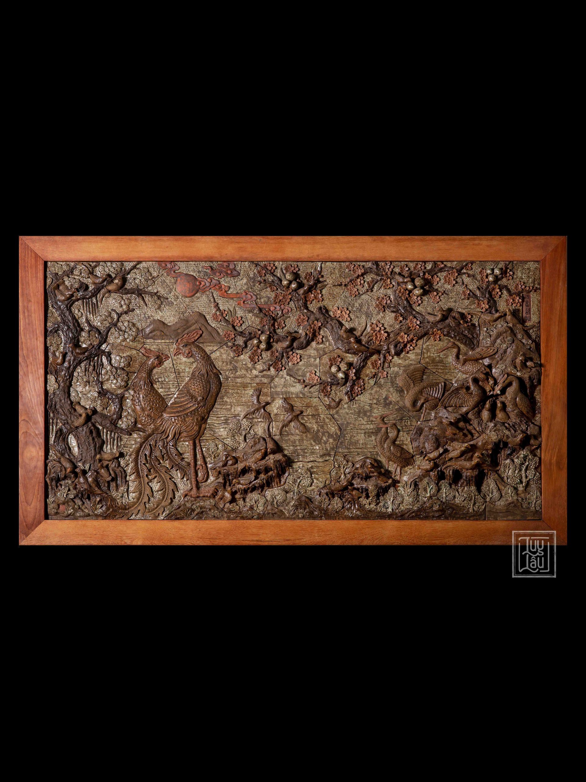 “ Tranh Bách Điểu Quần Đào ” chính là sự kết hợp hoàn hảo vừa mang ý nghĩa may mắn, trường thọ, khí tiết thanh cao thể hiện gắn bó vĩnh cửu.